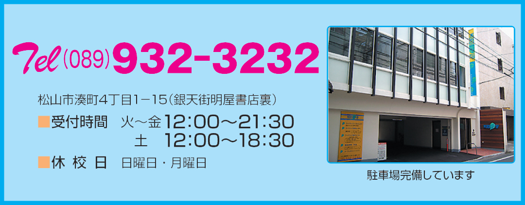 ワードアップ1階は生徒さん専用無料駐車場となっております(8台まで可能)。
